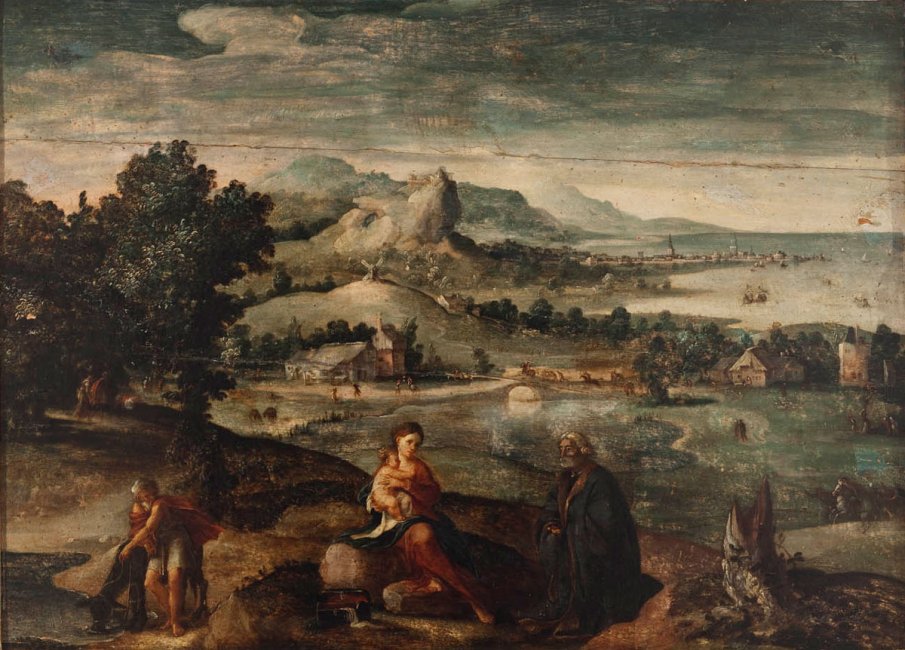 L'artefice dell'opera in esame, nel tentativo di declinare la fredda visione spaziale nordica in una più dolce sfumatura mediterranea, sembra dichiarare la conoscenza di entrambe le culture figurative. Il linguaggio pittorico adottato rivela una sintesi tra l'elemento spaziale di gusto nordico e una più sfumata definizione plastica delle figure di chiara matrice veneziana. Un fiammingo addolcito al sole del mediterraneo, che vede Giorgione e il primo Tiziano. Il dipinto è entrato a far parte della collezione con il lascito Baldo Calojanni, nel cui inventario risulta l'opera maggiormente stimata.