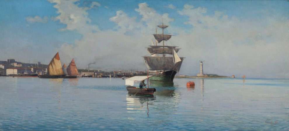 Così nello scorcio della Trieste dell'epoca, che si perde ad occhio sino a quell'angolo suggestivo della Sacchetta delimitato dal faro sullo sfondo, si muove insieme alle umili barche da pesca, un imponente veliero, in una sorta di Seicento nordico rinato. Si tratta di un lavoro fondamentale per capire il Grimani degli esordi, alle prese con le prime importanti prove su questo tema, soprattutto con protagonista il golfo di Trieste. Di lì a poco infatti, a partire dal 1894, sceglierà Napoli, attratto dalle ricerche di uno dei continuatori della gloriosa scuola di Resina, Eduardo Dalbono (1841-1915).