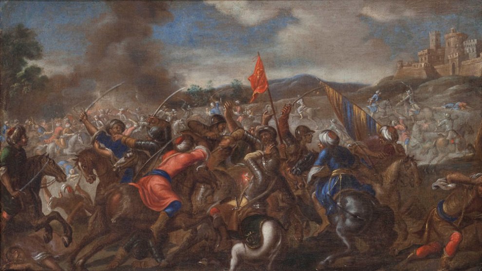 L'opera in esame evidenzia uno scontro tra cristiani e infedeli, questi ultimi riconoscibili dal consueto copricapo a turbante. Tale generica indicazione conferisce un esile pretesto narrativo a questo tipo di pitture sovente “senza storia” e “senza eroi”, in cui cavalli e cavalieri assumono lo stesso valore estetico-narrativo. In questo concitato ammassarsi di gruppi belligeranti non compaiono peraltro armi da fuoco, ma soltanto sciabole e scimitarre. Si registra inoltre una certa teatralità nelle pose dei contendenti e una rilevata resa delle masse muscolari dei cavalli, cifra distintiva del pittore fiammingo Pauwel Casteels, attivo nella seconda metà del Seicento. Si tratta di un'artista poco presente nelle realtà museali e praticamente assente dai tradizionali repertori di battaglie. I suoi dipinti, al contrario, godono di un certo interesse a livello di mercato.