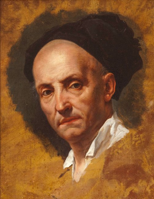 Paolo De Matteis, noto pittore napoletano, lavora dal 1714 (fino al 1718 circa) all'esecuzione di una tela di grandi dimensioni, raffigurante l'Autoritratto del pittore con l'Allegoria della pace di Utrecht e della pace di Rastadt, celebrante la fine della guerra di successione spagnola. Il quadro in questione è andato perduto in data imprecisata e di esso sopravvive soltanto un largo frammento che rappresenta il pittore seduto (Napoli, Museo di Capodimonte, cm 170x118). Nuova luce su questo quadro e sulla sua genesi viene fatta allora dall'importante dipinto di collezione ITIS, che per l'evidente somiglianza dell'uomo con quello dipinto al centro della tela in argomento può essere ritenuto un'effige certa di Paolo De Matteis. Lo sguardo del personaggio rivolto verso destra, mostra agevolmente l'uso di uno specchio e quindi rivela la sua natura di Autoritratto. Il marcato realismo del volto, con le sopracciglia folte, gli occhi scuri, le rughe evidenti che solcano il volto, tracciano la storia del personaggio. La fronte alta, coperta da un copricapo nero a turbante, evidenzia la marcata calvizie dell'uomo. Il collo, solcato di pieghe, prova l'età dell'individuo che dovrebbe avere intorno ai cinquant’anni. Aspetti fisionomici che ritornano nelle descrizioni dei suoi contemporanei.Per quanto riguarda l'origine di questo Autoritratto, esso potrebbe esser nato come prima idea per la grande tela del 1714, poi leggermente modificata nella versione definitiva, dove la testa viene girata verso destra, e non più a sinistra, e il colore del copricapo mutato da nero a bianco. Il suo stato non-finito sembrerebbe avvalorare la sua natura di studio preparatorio. Il nome Maratta che si legge sull'etichetta visibile in basso sulla cornice, non deve essere ritenuto solo frutto di fantasia, come pur talvolta accade, ma deve essere letto come probabile trascrizione di una tradizione legata al dipinto e nata in seguito al soggiorno romano di De Matteis e alla sua personale conoscenza del grande maestro di Camerano.