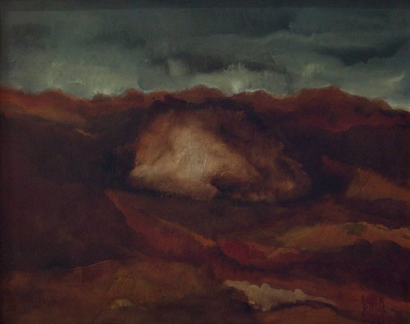 Personaggio eccentrico e affascinante, Giorgio Milia possiede in un sicuro mestiere e in un tonalismo che passa da brutale a impercettibile, le sue armi migliori. Il Paesaggio dell'ITIS, realizzato a ridosso della prematura scomparsa, dimostra chiaramente il talento di un uomo che cercava più di capire che di imporre un proprio linguaggio; se della lezione morandiana egli aveva coscienza, ne declinava quasi in modo del tutto naturale il senso del paesaggio che, come in questo caso, ha una metrica temporale più che spaziale; l'impressione finale, infatti, è di trovarsi dinanzi ad un teschio immerso in variazioni di rosso.