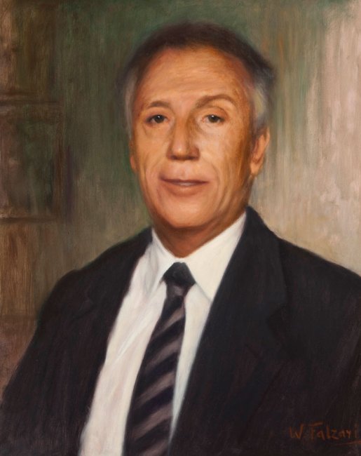 L'ITIS, al pari di altre importanti istituzioni cittadine, lo chiamò per rendere omaggio a chi aveva guidato l'Istituto anche in anni remoti, con un ritratto desunto da una lastra fotografica. In questo senso, pare evidente la fissità nei ritratti di Teobaldo Zennaro e Bartolomeo Tamburini che diressero l'Istituto durante e immediatamente dopo i difficili anni della Seconda Guerra Mondiale e che Falzari si limita a dipingere in una sorta di “ricordo”.