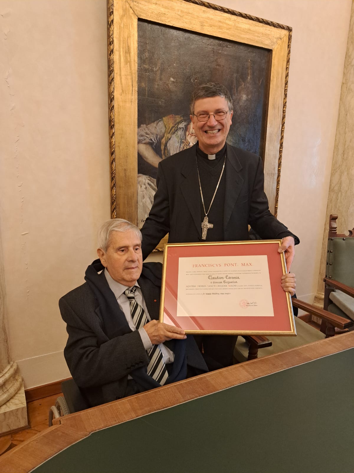 L'11 dicembre 2024 nella Sala Maggiore dell’ITIS, il vescovo di Trieste, S.E. mons. Enrico Trevisi, ha conferito l’onorificenza pontificia a Claudio Caramia. La pergamena di Cavaliere dell'Ordine di San Gregorio Magno rappresenta uno dei più alti riconoscimenti conferiti dalla Santa Sede a coloro che si sono distinti per la loro dedizione e il loro servizio altruistico alla Chiesa Cattolica e alla società in generale.