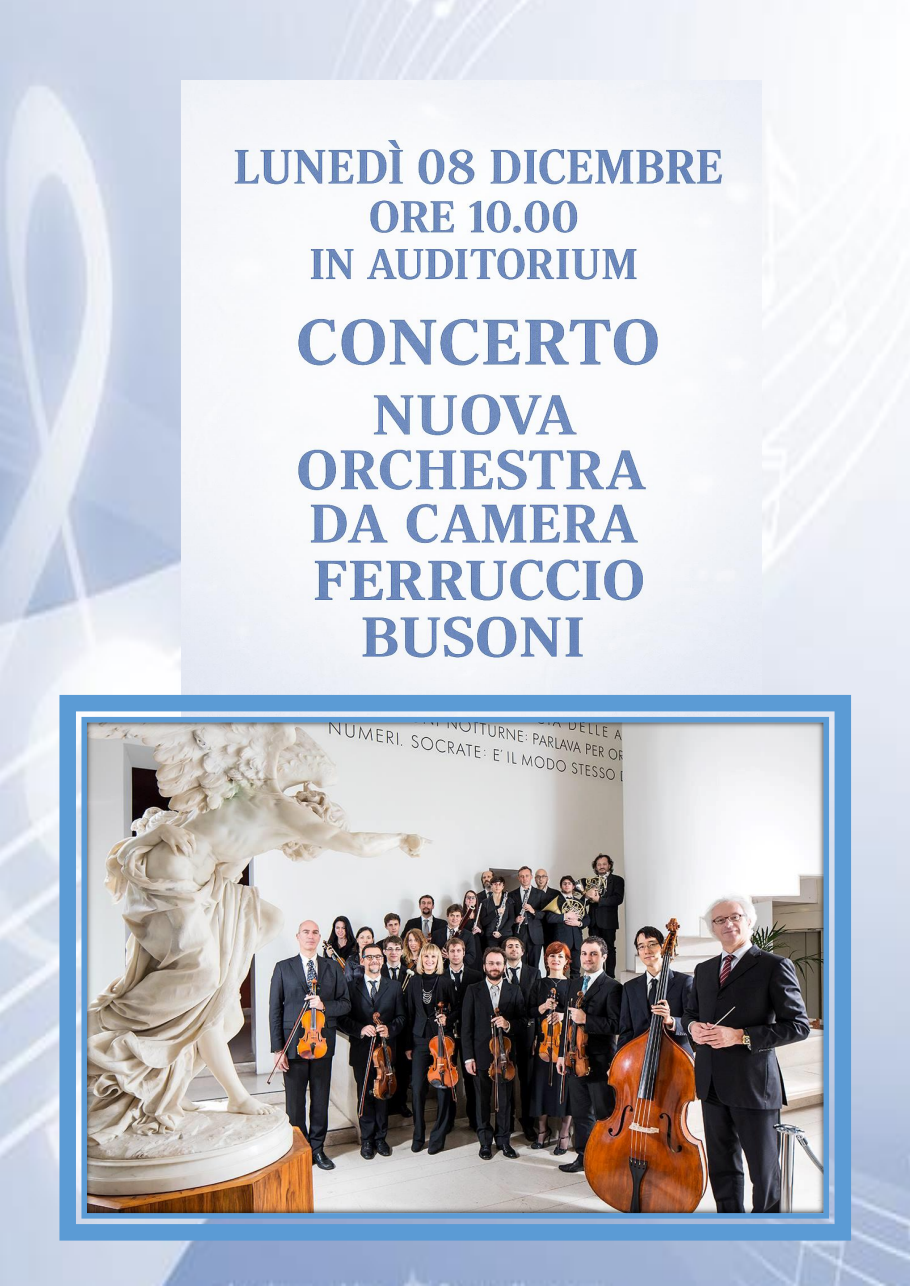 Siamo lieti di invitare lunedì 8 dicembre alle ore 10.00 nell'auditorium dell'ITIS, residenti, familiari e amici al concerto della Nuova Orchestra da Camera “Ferruccio Busoni”, uno dei complessi musicali più prestigiosi del Friuli Venezia Giulia.