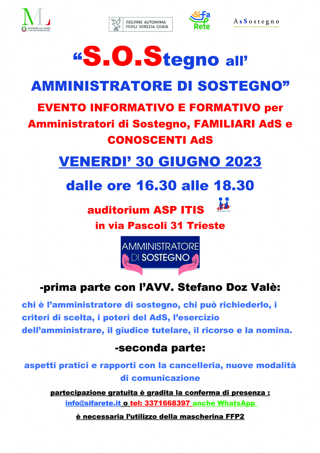 EVENTO INFORMATIVO E FORMATIVO per Amministratori di Sostegno, FAMILIARI AdS e CONOSCENTI AdS