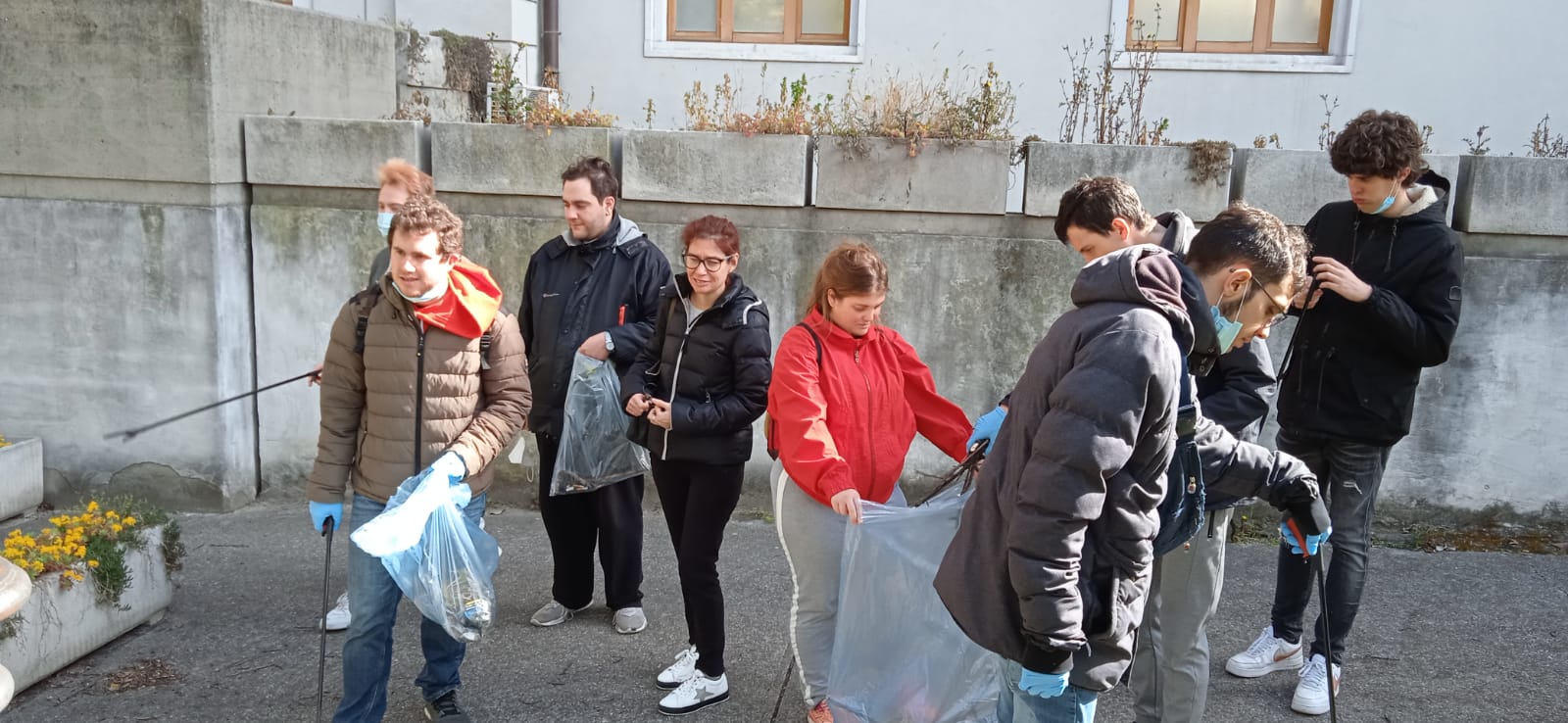 Iniziativa solidale dei ragazzi di "Oltre quella sedia", associazione di promozione sociale onlus, qualche mattina fa davanti All'ITIS per ripulire delle aree verdi esterne.