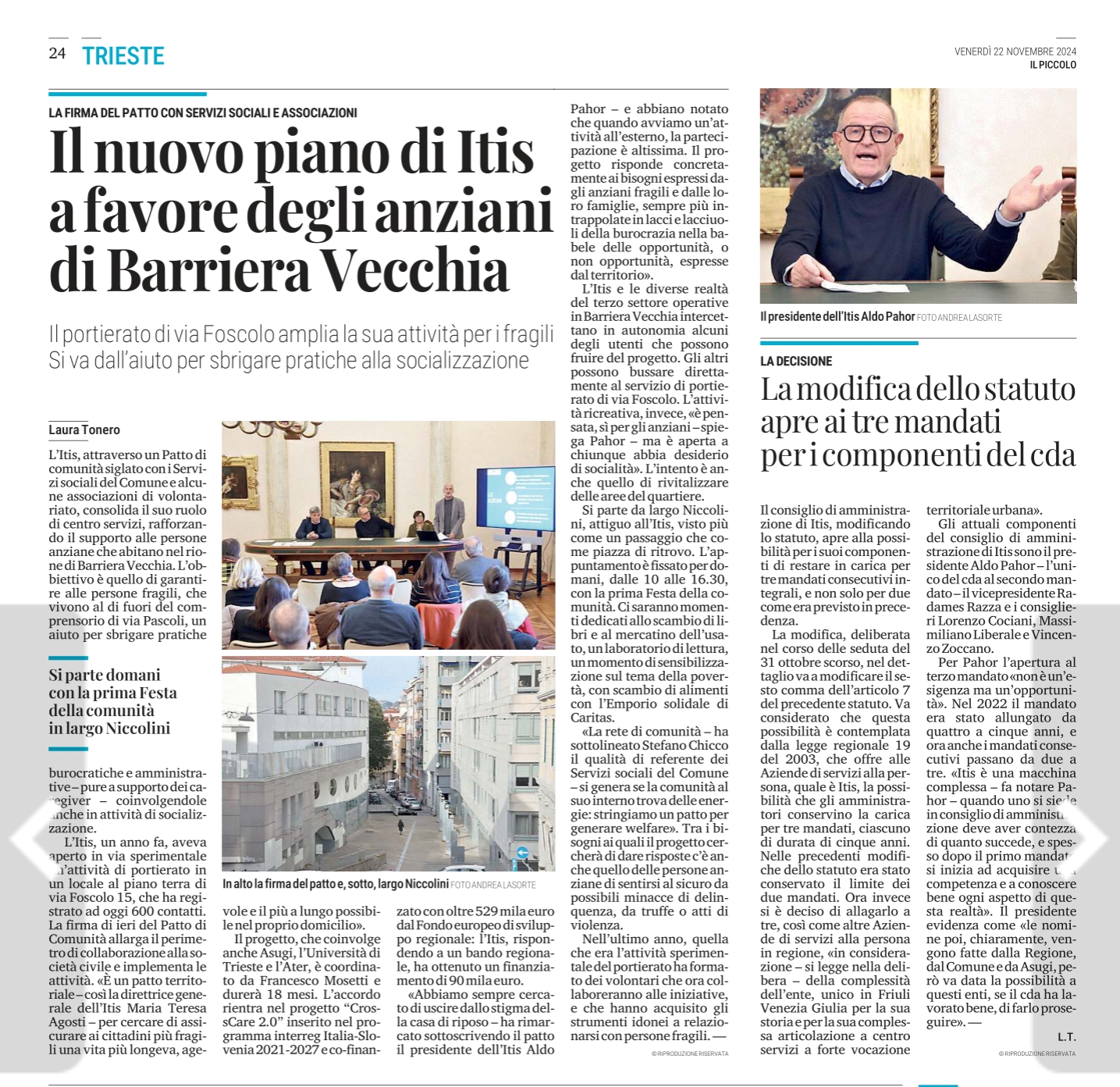 L'ITIS ha firmato il Patto di Comunità - CrossCare 2.0 con i Servizi sociali del Comune di Trieste e moltissime Associazioni di Volontariato della provincia di Trieste. Il portierato di via Foscolo, quindi, amplia la sua attività per le persone fragili: si va dall'aiuto per sbrigare pratiche alla socializzazione