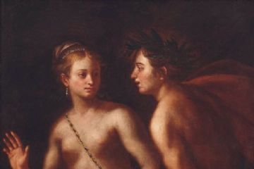Negli antichi inventari dell'Istituto il soggetto viene identificato in Orfeoed Euridice, l'inversione però dei ruoli, lei che si volta a guardare lui, tenderebbe ad escludere questa indicazione, pur nell'aderenza degli attributi. In riferimento al tema trattato l'ipotesi più probante vede nelgiovane uomo il dio Apollo, in virtù degli attributi che lo accompagnano: la corona d'alloro sul capo e la lira da braccio nella mano sinistra. Egli, infatti, fu anche dio della poesia e della musica.