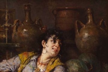 Protagonista della generazione del così detto verismo veneto, Egisto Lancerotto conobbe il successo per le sue composizioni aneddotiche soprattutto negli anni Ottanta dell'Ottocento. L'imponente e armoniosa tela oggi nella sala riunione dell'I.T.I.S., dalla “veloce e svolazzante stesura di matrice favrettiana”, venne ammirata a Trieste nel 1890 e acquistata dagli Alimonda per abbellire le sale del loro castello di Sagrado, chiamato non a caso “Miramare sull'Isonzo”. Il collezionismo locale ammaliato com'era dalla pittura veneta contemporanea (negli stessi anni in cui l'opera di Favretto, Una dichiarazione, entrava nel museo Revoltella) non poteva che premiare con l'acquisto anche una tela così sgargiante, ospitata con entusiasmo nelle sale del palazzo Revoltella dall'esposizione promossa dal Circolo Artistico.